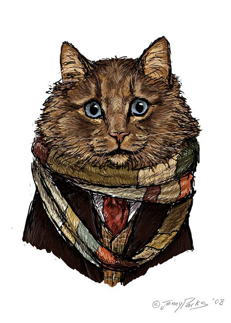 Jenny Parks, a scientific illustrator, imagined the eleven Doctors from Doctor Who as cats. The above cat is, of course, the Fourth Doctor, who was portrayed by Tom Baker. http://tardiscat.deviantart.com/art/Doctor-Mew-76714357 -via Fanboy | Facebook Page | Artist's Website | Image: Jenny Parks, posted with permission