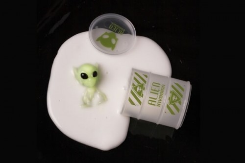 How do you make glow in the dark goo even more fantastic to play with? You package it in a jar shaped like a 55-gallon drum and add a little alien figurine. Get your Alien Invasion Glow-In-The-Dark Goo at the NeatoShop.