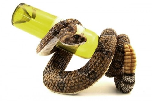 Halloween is right around the corner. Are you looking for a way to protect your favorite bottle of wine from sneaky ghouls, ghosts, and roommates? You need the Rattlesnake Wine Bottle Holder from the NeatoShop. This realistic looking snake will have everyone thinking twice about pilfering your favorite brew.