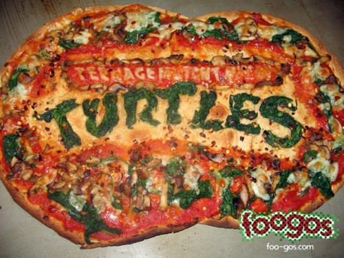 The blog Foogos displays the work of a brilliant advertising agent who makes logos out of food products, such as this very appropriate TMNT pizza. In the gallery, you can find other food logos, primarily those of superheroes and sports teams. The Philadelphia Flyers logo in roast beef and cheddar? Good choice!