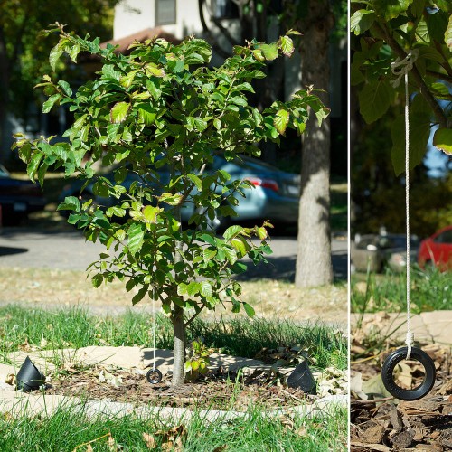 Phil Jones got playful when he saw this little tree. It needed a tire swing for outdoor fun, so he took one off of a toy car.
