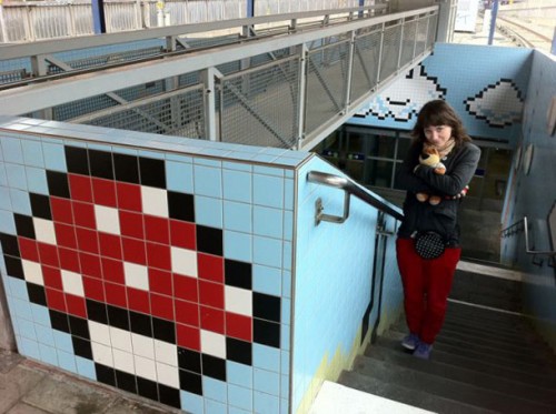 You know your city's subway station is clean and vandal free when awesome works of art, like these 8 bit artworks made out of tile, cover the walls without fear of being defaced.