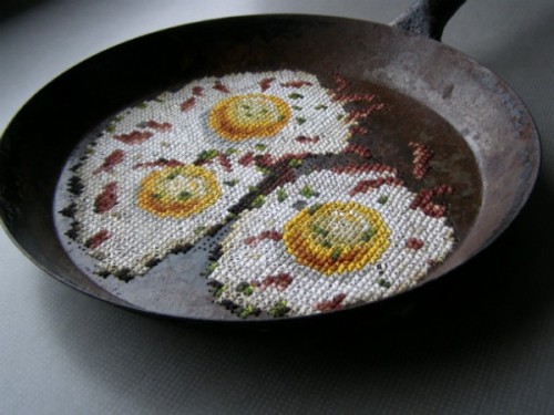 To Lithuanian artist Severija Incirauskaite, everything is an appropriate target for her needle. She cross stitches images onto car doors, old shovels, watering cans, and more. She'd probably stitch a pattern on to you if you'd hold still long enough. You can view other works by her and read an interview at the link.