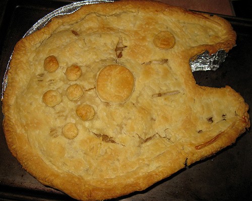 You ate that thing? You're hungier than I thought. Amy Radcliffe made an apple pie in the shape of the Millennium Falcon. Much like the ship itself, the project required clever modifications to the original pie pan design. You can read her step-by-step instructions at the link.