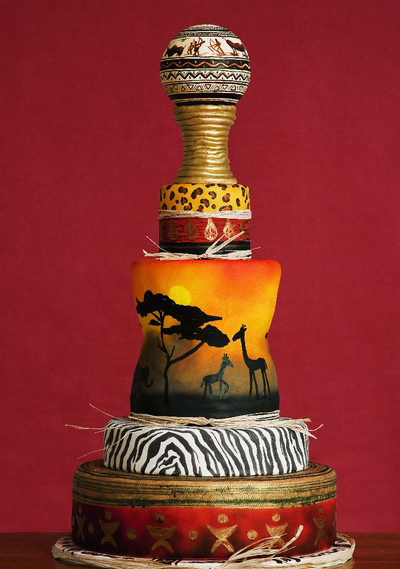 This gorgeous African wildlife-themed cake is from Rising Flours. See a bunch more artistically painted cakes, including cake reproductions of famous works, at Cake Wrecks. http://www.cakewrecks.com/home/2011/12/4/sunday-sweets-painted-cakes.html