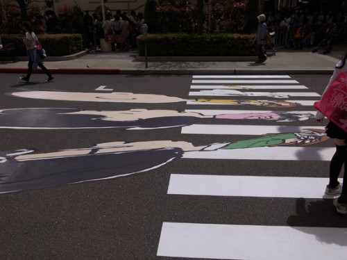 This optical illusion street art was placed on the road outside of Universal Studios: Japan to promote their new Flying Snoopy ride. The characters can only be seen properly crossing the road from the right perspective and then voila! Peanuts-Abbey Road parody! What a creative and cute way to advertise a new ride!