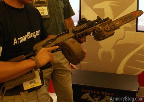 The latest innovation comes in the form of the Doublestar Zombie X Chainsaw rail attachment-just attach it to your favorite assault rifle and get to chopping if the rotten buggers start to close in on you! Perfect for channeling your inner Gear or Space Marine, badass suit of armor not included.
