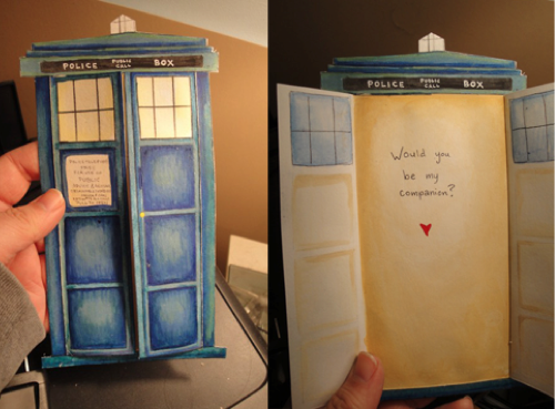 A Doctor Who Valentine's Day Card The perfect geeky Valentine for any Whovians out there. I don't know about you guys, but I'd love to get a homemade card tailored to my personal interests like this.Link Via The Daily What Comments (0) Login to comment. Click here to view up to the first 100 of this post's 0 comments