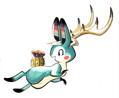 Often sighted by weary travellers, the Jumpalope was once considered to be a mythical creature. This behorned lagamorph thrives in the desert as it can store a week’s worth of water in its cactus tail. To provide camouflage, its ears change colour with the leaves of the seasons.