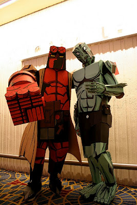 These delightfully square versions of Hellboy and Abe Sapien look so cool that I'm sure they were a big hit at whatever Con they were attending when these pictures were taken.