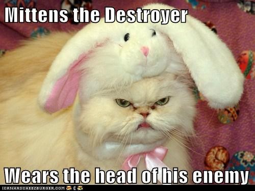 Have you ever wondered why your kitty is so crazy? It might be the nature of cats, or it could just be because the Easter Bunny messed with him one too many times. That's why you really ought to keep your little furball locked up this Easter. After all, even if he doesn't take out the bunny like Mittens did, the Easter Bunny could just as easily torment your kitten even more, making him even more insane.