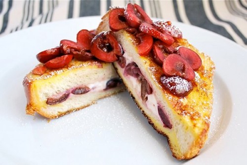 Woah, now, that cheesecake isn't a proper, healthy breakfast! You need to modify it a bit. Mix it with cherries, shove it inside some challah, then batter your bread with an egg mixture. Soon enough, you'll have some healthy French toast.