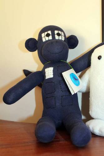 If you had a crush on the TARDIS from the Neil Gaiman episode of Doctor Who, well, you can now finally cuddle up and sleep with the it. Granted, this one is not the adorable girl from The Doctor's Wife, but the sock monkey version is pretty darn cute anyway.