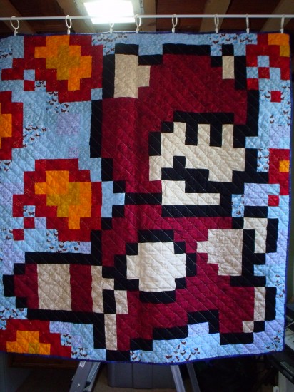 When you think about it, quilts are already just a bunch of squares for the most part. That's why they're pretty well adapted to creating 8-bit designs like this great Mario quilt by Etsy user bsayasane. She has a bunch of similar works as well, even though her shop is lacks any inventory right now, you can see more of her work over at The Mary Sue.
