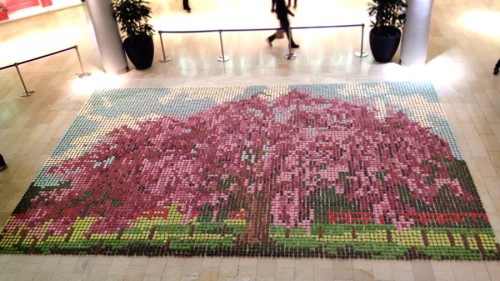 This is a mosaic of a cherry blossom tree made out of 10,000 cupcakes. The Japanese television show ItteQ ordered it for a special episode.