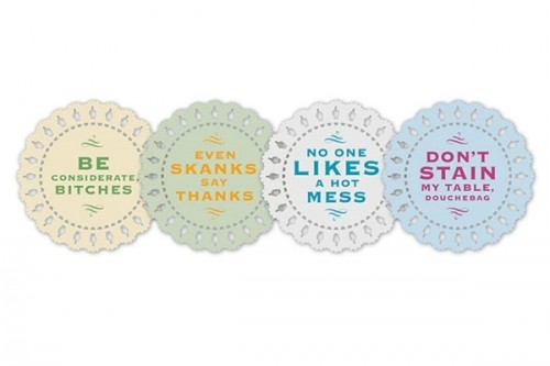 Going to a party? The Douchebag Indelicate Doilies Coaster set makes a great hostess gift. Even skanks say thanks.