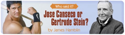 You might think you could easily distinguish the pithy wisdom of a baseball player from that of a feminist literary figure. Or can you? You'll be given a quote, and you decide whether it came from Jose Canseco or Gertrude Stein. That's the challenge of today's Lunchtime Quiz at mental_floss. What's really confusing is how nonsensical the quotes are! In the end, I only scored 56%, which is what you'd expect from not knowing any of the answers. I hope you do better! Link