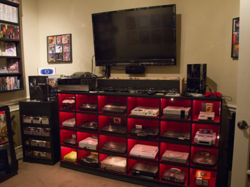 The best thing about Youtube user 16bitghost's absurdly huge gaming set up is that the 24 console areas still aren't enough for his PS3. Seriously though, how do you even switch between them all on your TV system? I get annoyed just going between the DVD player, cable, Wii and X Box, I can't imagine flipping through all of these options.