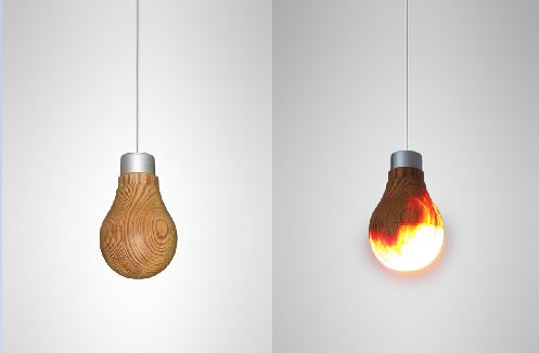 Ryosuke Fukusada's light bulb looks like a solid block of wood. But it's actually an LED light with a wood veneer. When it's turned on, the bulb glows a fiery orange.