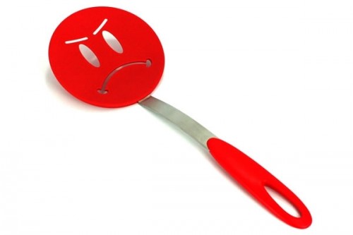 Do you hate to cook? You need a spatula that reflects your displeasure with the task. Get the Angry Face Spatula Turner from the NeatoShop. This flexibile nylon kitchen tool is perfect for cooking meals against your will.Smiley Face Spatula Turner also available.