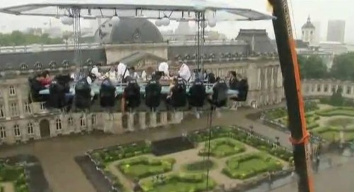 Stefan Kerkhofs's Dinner in the Sky experience lets you eat a gourmet meal served on a platform held aloft by a crane: