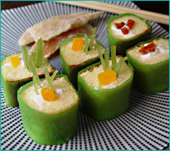 The Twinkie, nature's perfect food, can be used for almost any culinary purpose. Here's a recipe for a sushi-like production. You'll need fruit roll-ups, dried mango, candied fruits and dried fruits. And, of course, lots of Twinkies.
