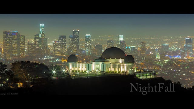 Colin Rich's majestic time lapse video shows lights filling the darkness as the sun sets over Los Angeles. The background music is taken from an M83 album. An old woman says in French: