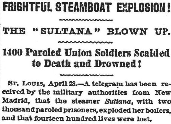 So why is the Sultana disaster such an unknown part of U.S. history? Mostly because of timing. After the bloodiest war in U.S.history, the nation was largely desensitized to death. What was another 1,700 in the wake of hundreds of thousands of casualties? The newspapers were full of articles about the end of the war, a new presidency, and a nation rebuilding. On the day before the disaster, the last Confederate army had surrendered and John Wilkes Booth had been captured. The story of the sinking of the Sultana was relegated to the back pages.
