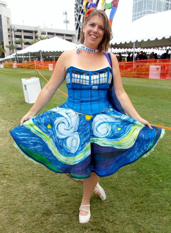 Alternatively, you can always make your costume reflect one specific moment of your character so you will stand out to true fans. Tardis dresses are a dime a dozen these days, but a Tardis dress depicting Van Gogh's take on the Police Box, now that's something special.