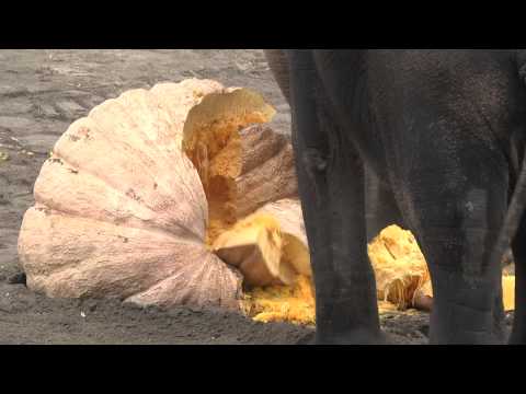 This video from the Oregon Zoo is actually titled Lily's First Halloween, but squishing squash is what the elephants did Friday. Samudra, Packy, the baby Lily, and other elephants are given pumpkins to play with and snack on to kick off the zoo's Halloween celebration. Other activities this weekend include a scavenger hunt and a costume party. Oh yeah, that really big pumpkin? It weighed 1,300 pounds before the elephants got ahold of it! -via Tastefully Offensive