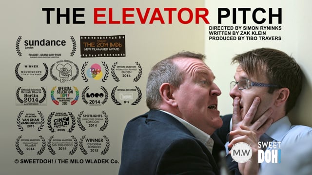 The famous movie producer steps into the elevator. The intern sees his chance to pitch his brilliant movie idea. He makes elevator pitch--or so it appears. In this award-winning short film by Simon Ryninks, Zak Klein, and Tibo Travers, what appears to be reality isn't. The narrative set falls over, again and again.