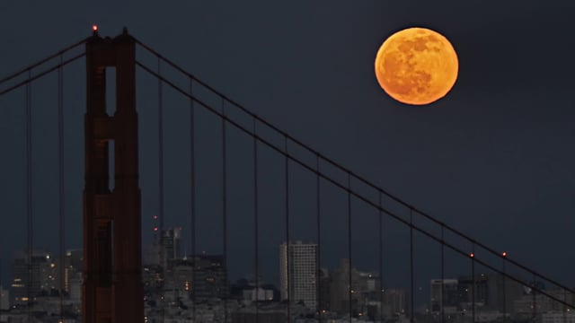 Still photographer and filmmaker Gary Yost beautifully captured a full red moon's rise over the Golden Gate Bridge on May 15, 2014. Set to the tune of "Fly Me to the Moon," covered by fabulous jazz singer and Mrs. Elvis Costello Diana Krall, the video runs at 10x increased speed. Yost shot the footage at Point Bonita Lighthouse, approximately one and a half miles away from the bridge. Via Laughing Squid.
