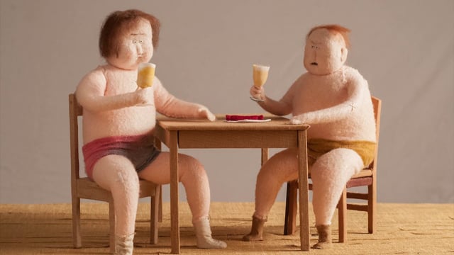 This amusing video is the trailer used to promote last year's National Animation Festival in Bruz, France. Directed by Emma De Swaef & Marc James Roels, "Fight!" is a stop-motion animation in which two woolen, adorably chubby wrestler puppets battle to the point of nauseated exhaustion, after which they quickly make peace. Via Juxtapoz.
