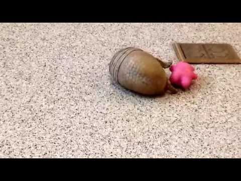 YouTube Channel Animal Moments posted this adorable video of Rollie, a southern three-banded armadillo, playfully pouncing on his little pink pig toy. The footage was captured by an intern at the NEW Zoo and Adventure Park in Green Bay, Wisconsin. Via Nothing to Do With Arbroath.