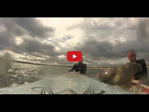...and they weren't kidding. It doesn't get much wilder than a seal hopping on your surfboard to ride the waves along with you! Matthew Stanley and a friend were surfing near Amble, Northumberland, on the northeast coast of England, when they suddenly realized they had company. Stanley explains,