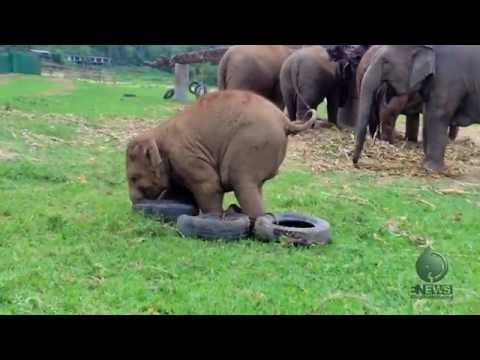 This adorable elephant calf seems to be having a ball with a toy consisting of three tires that are connected with rope. The baby and his herd of elders are residents of Elephant Nature Park in Chiang Mai, Thailand. Via Nothing to Do With Arbroath