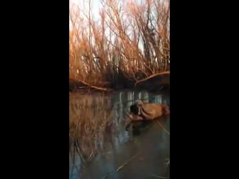 Here we have an outdoorsman who must cross a frozen creek where the ice is kind of thin. The creek seems to be shallow, and he’s wearing waders anyway, so why is the guy so skittish? It’s not explained why he must cross the ice; my theory is that the buddy recording it has already crossed, since he seems to know so much about the ice conditions, and he weighs a lot less than the fellow shown. Anyway, the humor comes from not only the guy’s actions, but also his buddy’s laughter. Best of all, we get to hear the creaking and cracking of the ice as he makes his way across. -via Daily Picks and Flicks