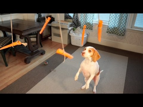 Maymo the lemon beagle is one smart pup, and his human constantly throws challenges at him. In this odd turn of events, Maymo is met with carrots tied to the blades of the ceiling fan with string, which looks like some kind of carrot carnival ride. But this weird orange contraption is no match for Maymo, particularly since he's aware that it's edible. -Via Arbroath