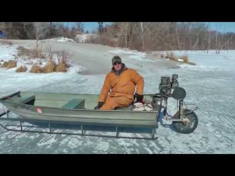 Fisherman Clayton Will isn’t going to allow chilly weather to keep him from enjoying a day out on the water. He’s built an iceboat by attaching skids to a jon boat. The engine is a saw motor with the buzzsaw blade still attached! The teeth on the blade do a great job of grabbing the ice and giving Will the traction he needs to maneuver.