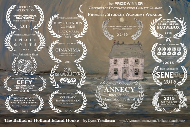 The Ballad of Holland Island House is a song and video by Lynn Tomlinson, with music written by Anna Roberts-Gevalt and Elizabeth LaPrelle. The animation was done by manipulating a thin layer of oil-based clay. It tells the story of the house, from its beginnings as a home for woodland creatures as a tree, then generations of people, then birds, and finally fish. -via io9