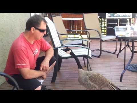 Here’s a fellow talking to a Canada goose in his own language. What they’re talking about, I don’t know, but he seems awfully friendly for a goose. If this seems like an anomaly, let me tell you a story. There is a flock of Canada geese that live on the river behind my house. They were once typical Canada geese with nasty tempers that would menace and chase people and pets randomly. Then the city installed a duck chow dispenser, allowing passersby to feed the ducks and geese for a quarter, and suddenly the geese are just as nice and friendly as this one. -via Tastefully Offensive