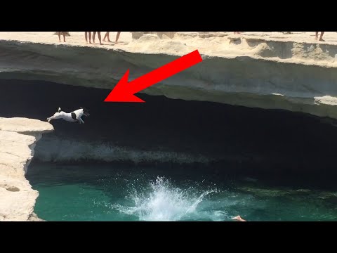 Everyone at this cove in Malta was having a grand time, jumping into the clear blue water for a swim. The dog watched closely and carefully pondered joining in. Why not? Jump, little terrier!