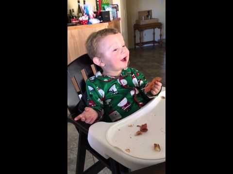 Little Easton got his first taste of bacon on Christmas morning. He was quite pleased with all that salty, fatty goodness! Not only that, he made sure he could say the word, so he can ask for it again and again. -via Daily Picks and Flicks