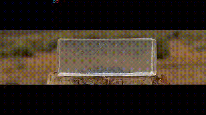 A marksman shoots a Magnum .44 into a block of ballistic gel. In a slow-motion replay, you can see the aftereffects, in which the block has a case of gas, then suffers an attack of fiery indigestion, and then farts, through its newly-created "digestive canal." There's a perfectly normal explanation for this.