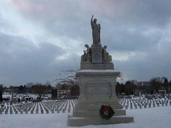 Many of the flood's known victims are buried in Johnstown’s Grandview Cemetery. A section of the cemetery called the "Unknown Plot" contains the bodies of 777 flood victims who could not be identified. Three years after the flood, on May 31, 1892, a "Monument to the Unidentified Dead" was unveiled at the cemetery. Made of granite and standing 21 feet tall, the monument is topped by three allegorical women: Faith, Hope, and Charity. Hope points heavenward, indicating the presumed final destination of the Unidentified Dead.
