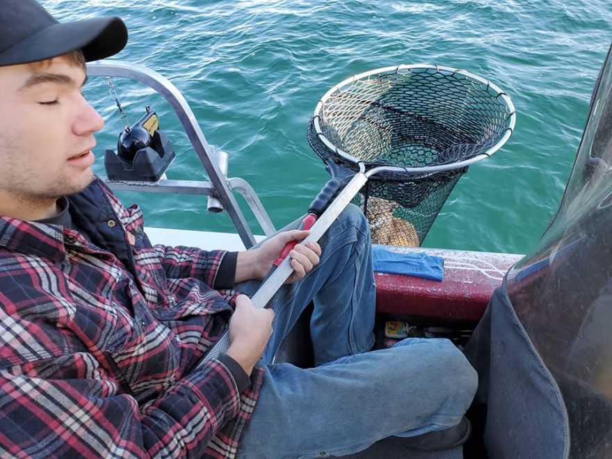 Rather than leave the animal to try and make it back to dry land on his own, the Herefords stepped in — Brett scooping up the exhausted bobcat in a fishing net.