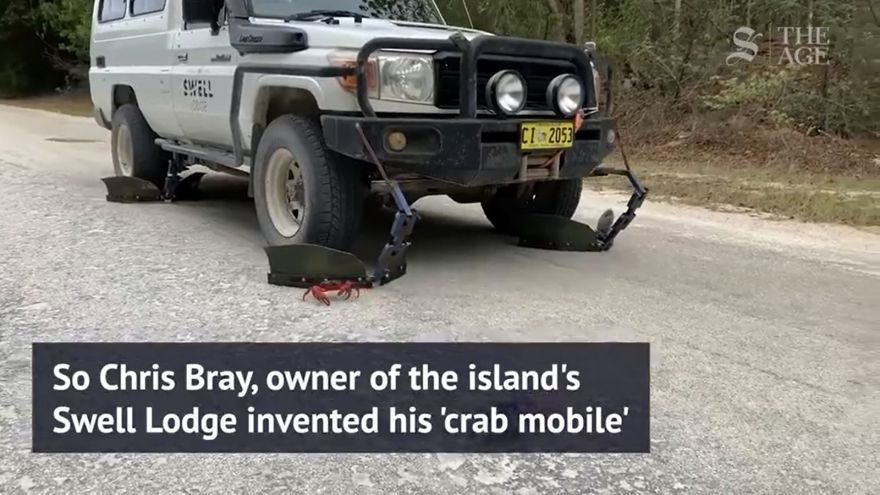 Christmas Island, Australia, is home to about 1,800 people and, annually, 50 million migrating red crabs. They swarm across the island, including on the roads. Local resident Chris Bray would like to avoid crushing them as he drives, so he built these wedges and mounted them in front of the wheels of his SUV. Traveller reports: