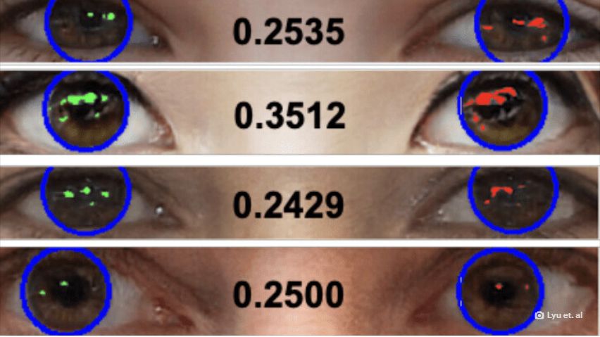 The system exposes the fakes by analyzing the corneas, which have a mirror-like surface that generates reflective patterns when illuminated by light.