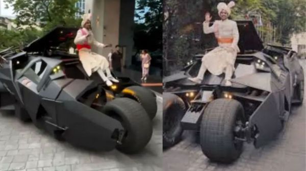 These weddings almost seem competitive with couples attempting to outdo each other with original pagentry. The Instagram photography account shared this video of a groom named Fenil arriving in the greatest of all wedding vehicles: a Batmobile. It is, specifically, the tumbler Batmobile that appeared in The Dark Knight trilogy.
