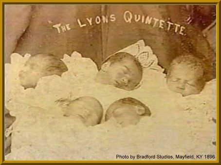 Smithsonian posted a comprehensive article about the Dionne Quintuplets, who we posted about recently. A single line in the article caught my eye, because I'd never heard of the Lyon quintuplets, who were born in Mayfield, Kentucky, in 1896, and were the first quintuplets in America to be born alive.